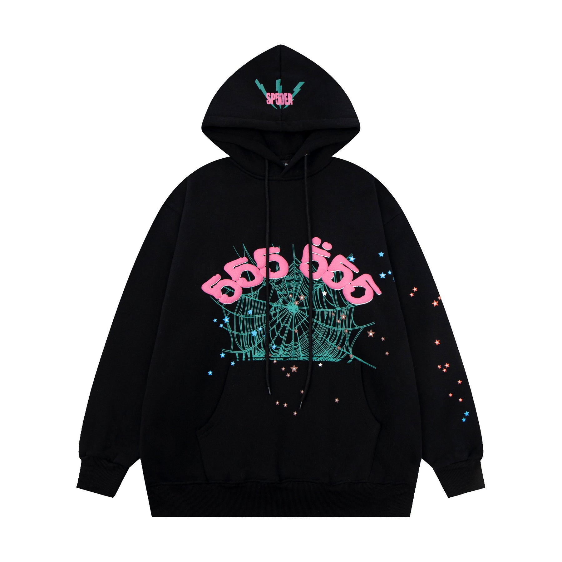 The SP5DER 555 Hoodie blends bold streetwear energy with signature SP5DER graphics. Featuring the iconic “555” web design printed across the chest and splatter detailing throughout, this hoodie embodies the brand’s rebellious, high-impact aesthetic. Crafted from premium heavyweight cotton with a relaxed fit, it’s built for both comfort and statement wear.