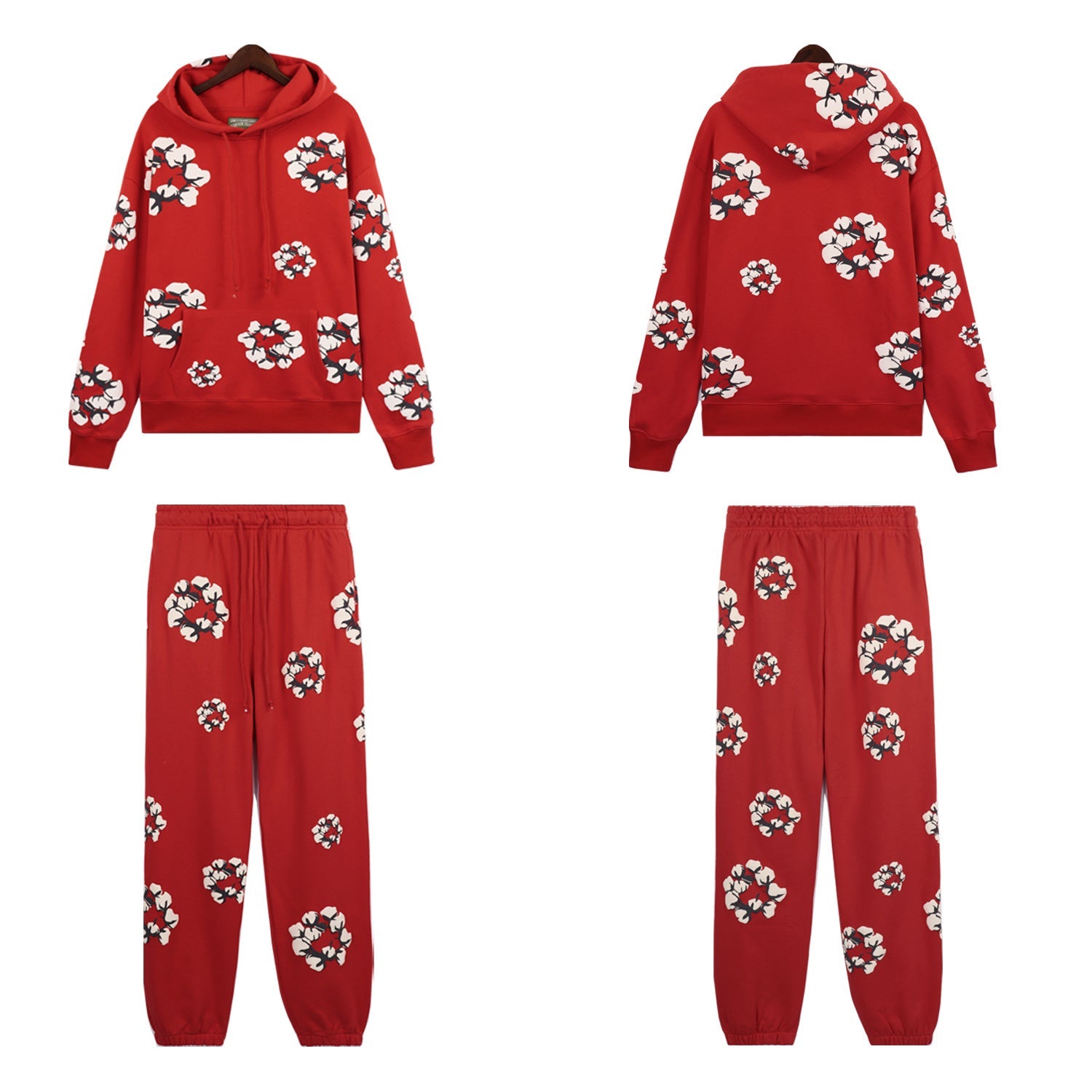 The Denim Tears Cotton Wreath Tracksuit features the brand’s signature cotton wreath motif — a powerful symbol of African American history and heritage. Crafted from premium heavyweight cotton, the set includes a crewneck sweatshirt and matching joggers for a statement look rooted in culture and comfort. Available in multiple colorways including black, red, grey, green, navy, and pink.